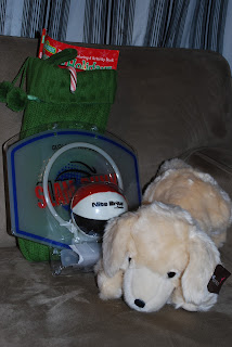 My talented mother made them each a felt envelope with their initials on it...it was packed full of candy. Which was gone before I had a chance to confiscate it, and eat it all myself ration it out to them in the upcoming days.